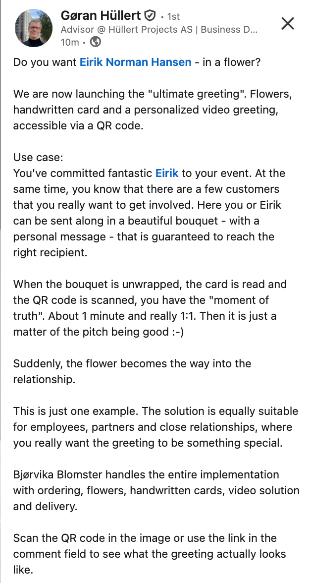 My old friend Göran Hüllert’s wife has a flower shop in Norway.