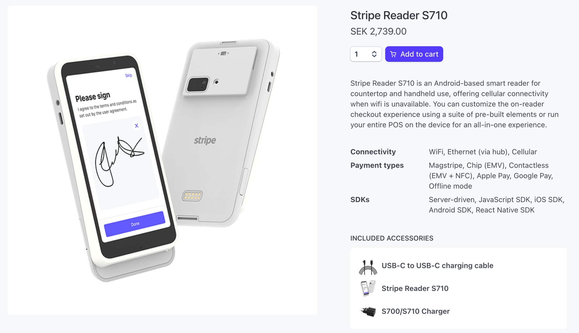 To enable this, you will need a Stripe-supported card reader, like the Stripe Reader 700 or 710.