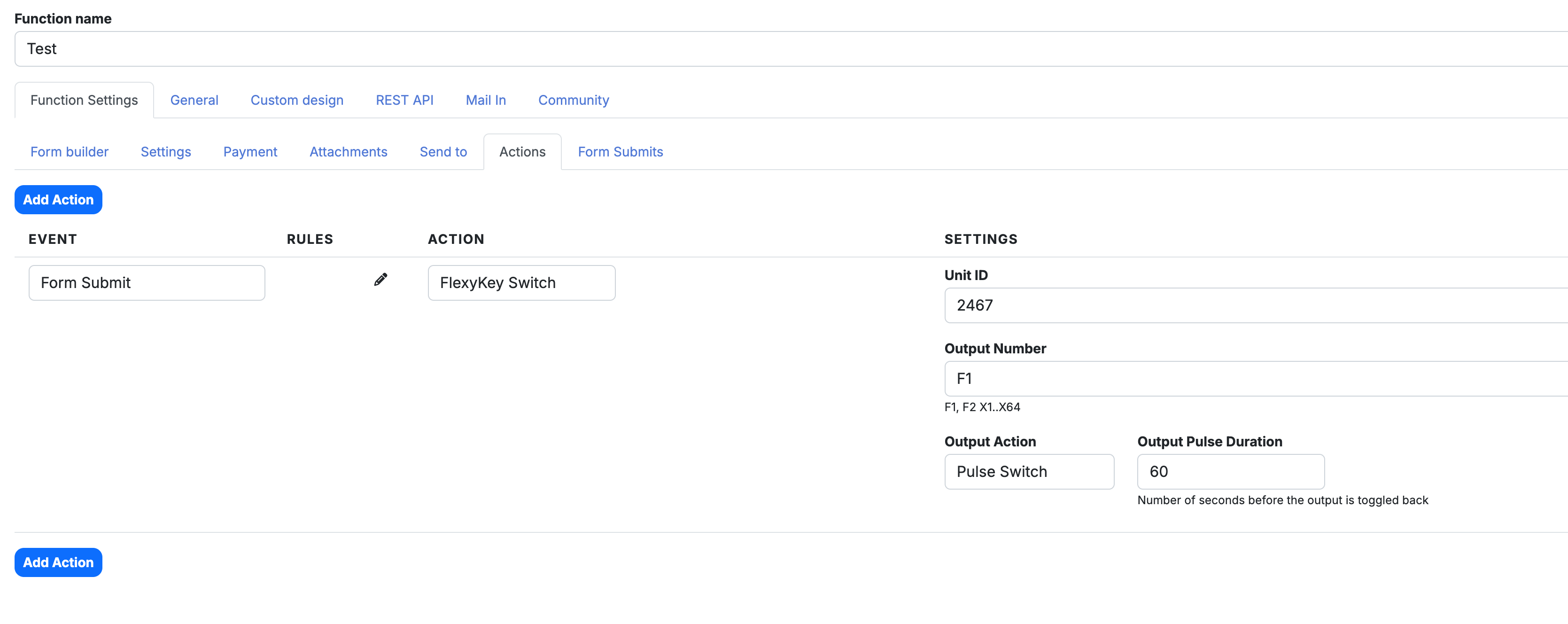 With this integration, you can use Blippa to open gates, doors etc, controlled by a FlexyKey control box.