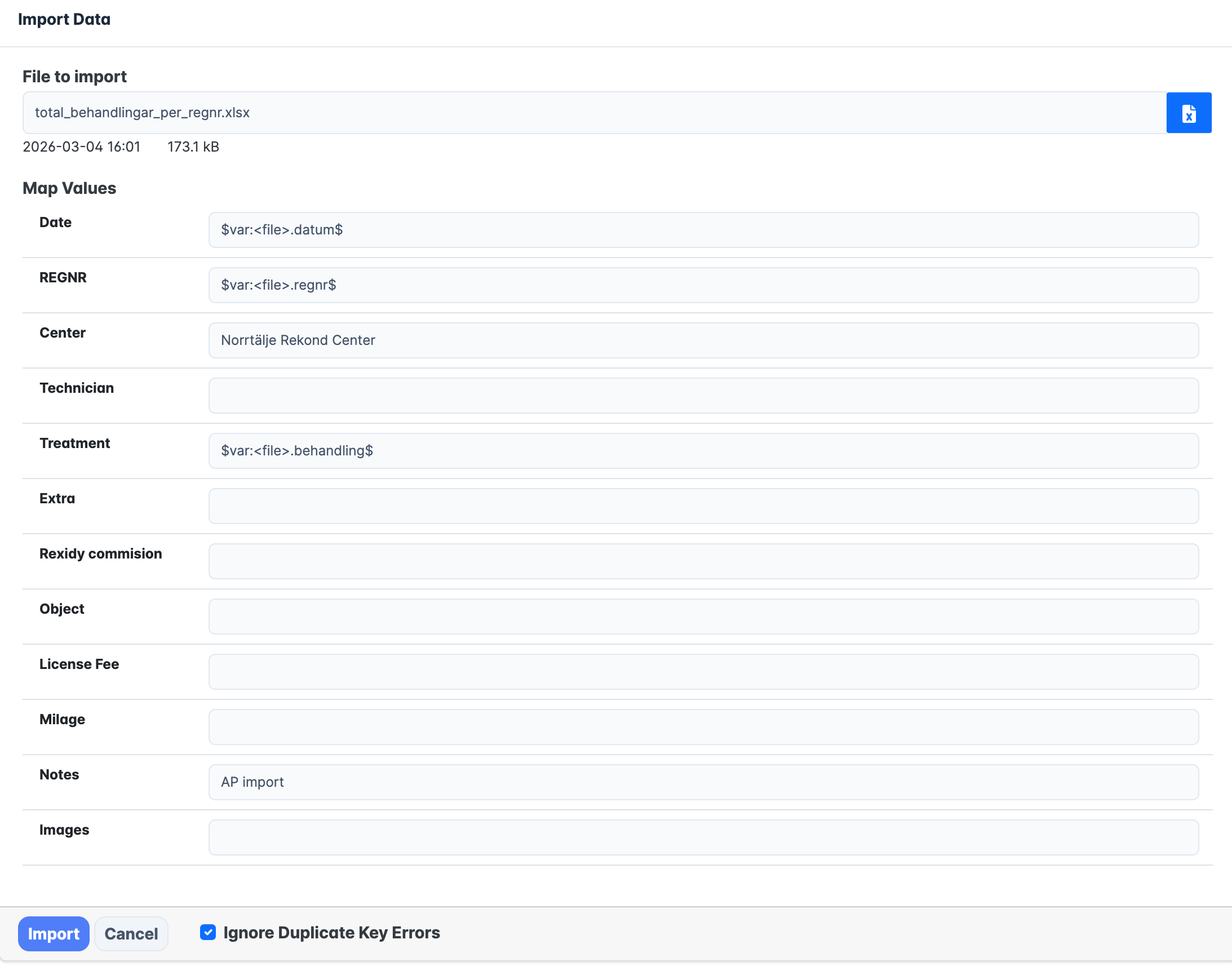 Note: If you select the “Ignore Duplicate Key Errors” the import will just skip the errors and continue.