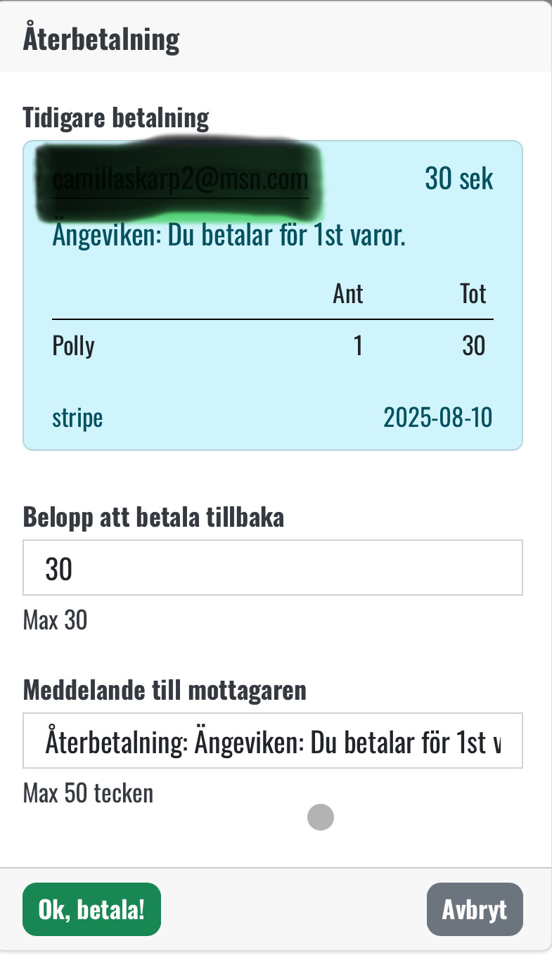 Up until now, it has been possible to make payment refunds if the payment was made with Swish.