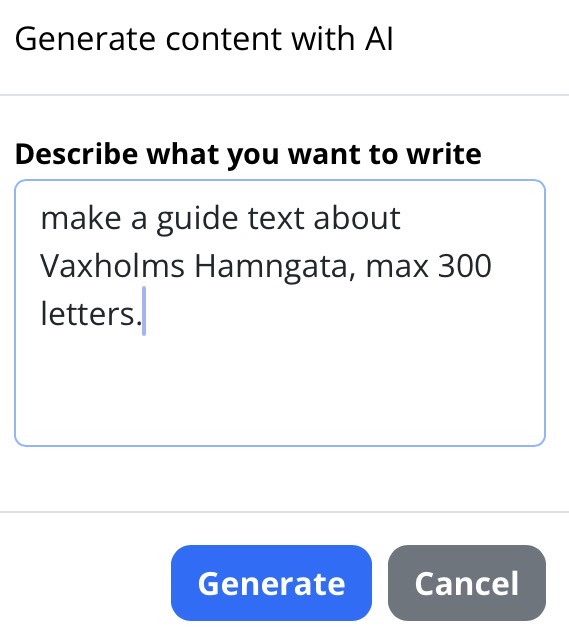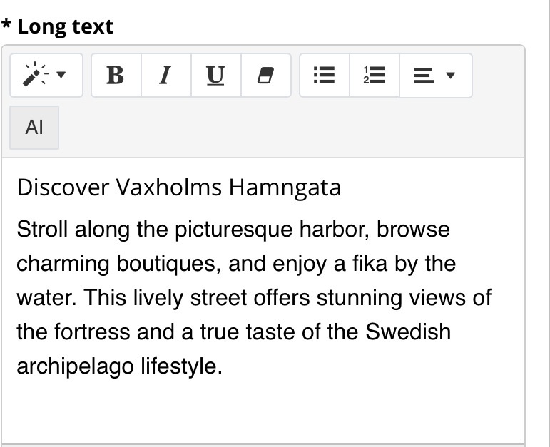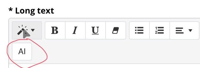 We have now added an AI button to the HTML editor, allowing you to use AI to generate text.
