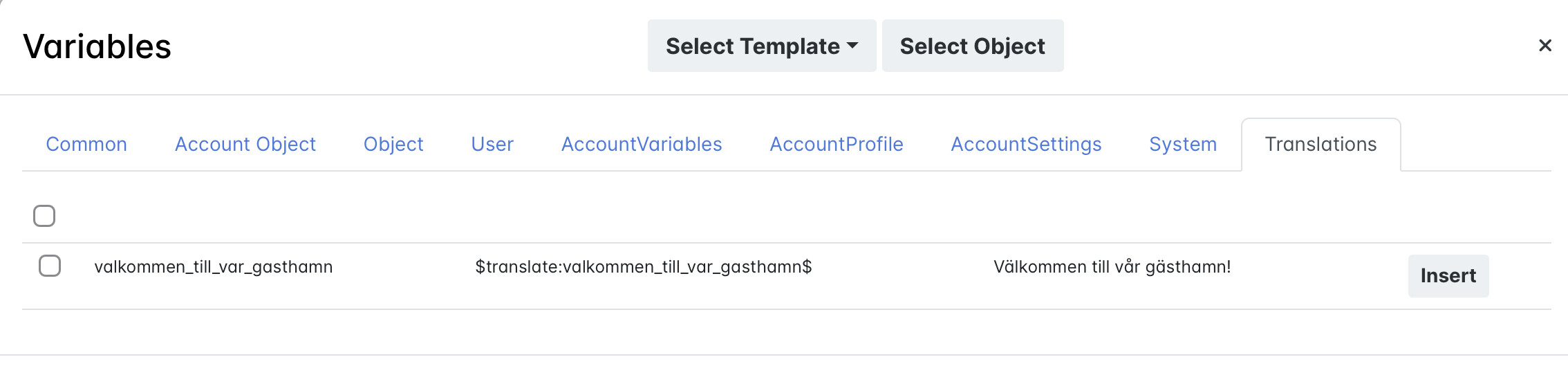 - A variable (key) is automatically created and the phrase is automatically translated into all selected languages.
