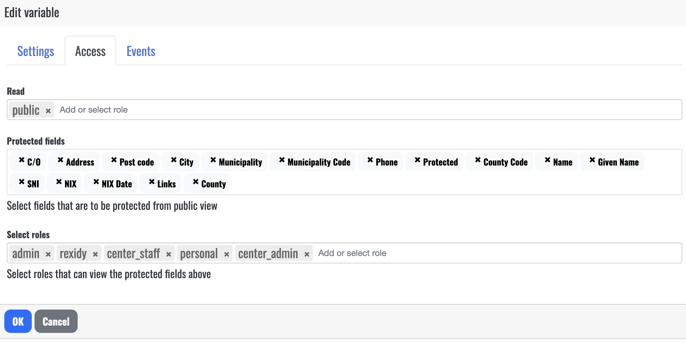 Important: Set the access security correct to prevent sensitive owner details to be exposed to Public (=anyone). (Only needed for the Biluppgifter Data):