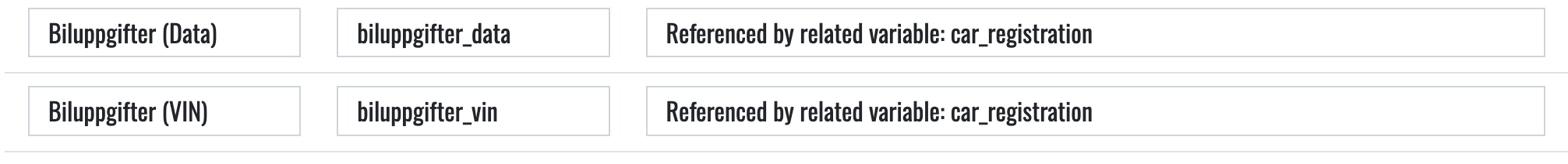 Create two Data Sources, one for Biluppgifter Data and one for Biluppgifter VIN.