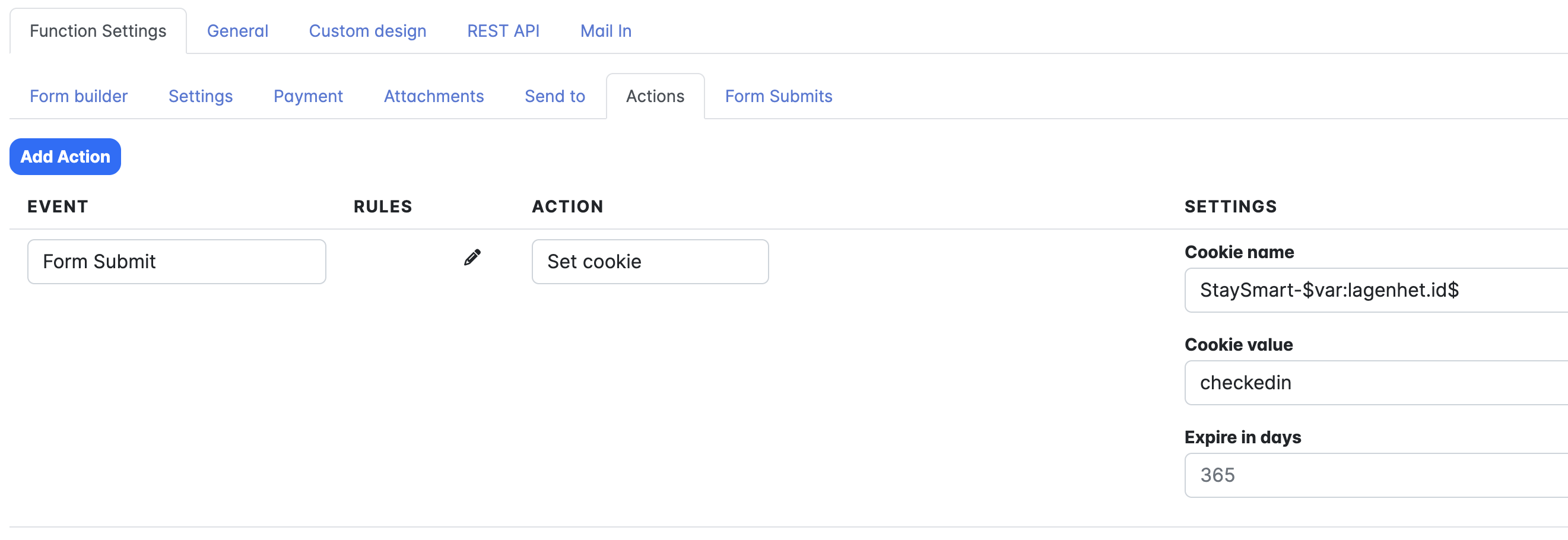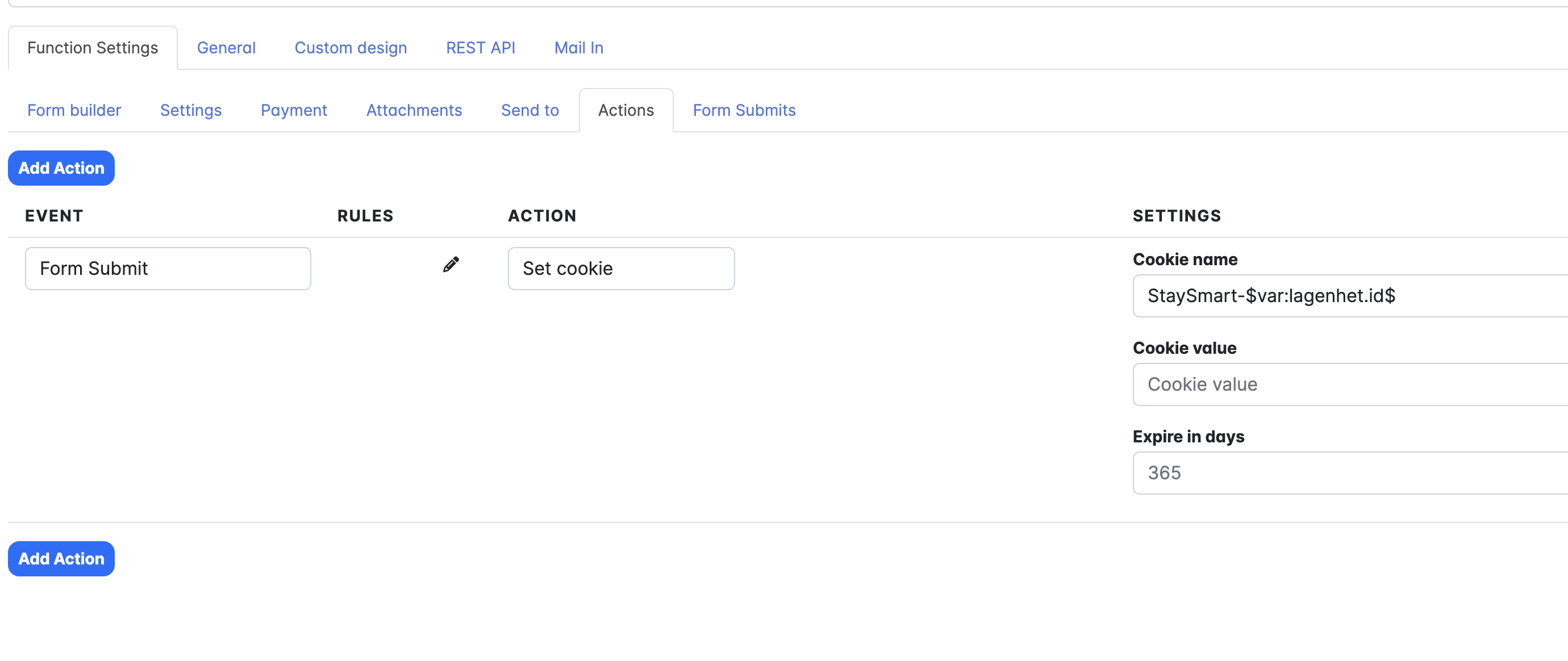 So, we added the possibility to let the cookie contain the apartment id (in this case, the variable lagenhet.id)
