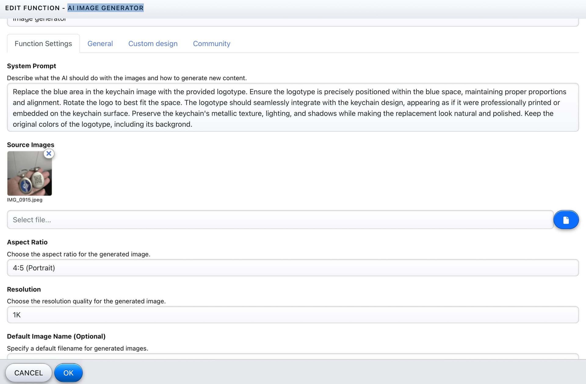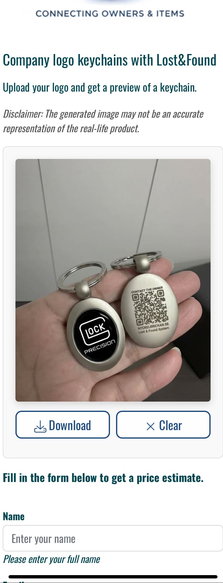 To make it possible to generate images of Lost&Found keyrings with custom logos, we have now developed a new function: AI IMAGE GENERATOR